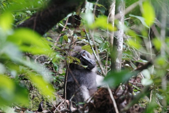I’ve spent two days now out with the monkeys. There are 3 habituated troops here and I’ve been out with the one that lives in the Kakenauwe reserve just near the village. They live in secondary forest and plantations (cashew and coffee), they also venture out of the forest and raid the local maize and sweet potato farms. This troop contains 40+ individuals but they often split into subgroups and at the moment there are approximately 23 individuals that we’re following. We record behavioural data and plot where they’re roaming using a handheld gps. We also record what they’re eating. The idea is to understand how, why and when they raid crops – whether they do it because there aren’t enough food sources in the forest, or because crops are a nice easy food source (the McDonalds of the monkey world!). This data will help me to develop management strategies for this species which conserve the monkeys, and ensure local people’s livelihoods are sustained too.