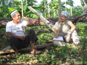 I finally managed to sit down with the farmer who poisoned the Kawelli troop of monkeys this week and interviewed him about the inicident and what led him to do it. I was pretty apprehensive about this meeting to be honest. The law is a little bit grey about the killing of monkeys when on the farms. In the forest the monkeys are protected and it’s illegal to hunt or kill them (or capture them), but once the monkeys come out into farmers’ fields they are essentially allowed to do whatever they feel they need to to protect their crops, and the rangers basically turn a blind eye to it. However people are still very nervous about admitting to anything like this. It took quite a while to find out who had actually set out the poison in the farm and it’s only because I have such a strong, long term connection to the village that people were willing to tell me the truth and I was surprised that the farmer in question was willing to talk to me. In fact, he was really keen to speak to me and the interview went extremely well. He was open and honest about everything and was happy to be filmed talking about it. I deliberately conducted the interview in his farm, to make sure I didn’t disrupt his day too much but also to keep it as informal as possible. I speak fluent indonesian so didn’t use a translator which also helped to keep it informal. Had we conducted the interview in his home I am sure it would have been a very different atmosphere. As it was it was actually more like a really good chat than an interview.