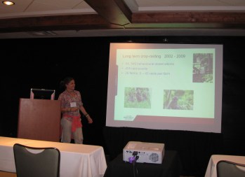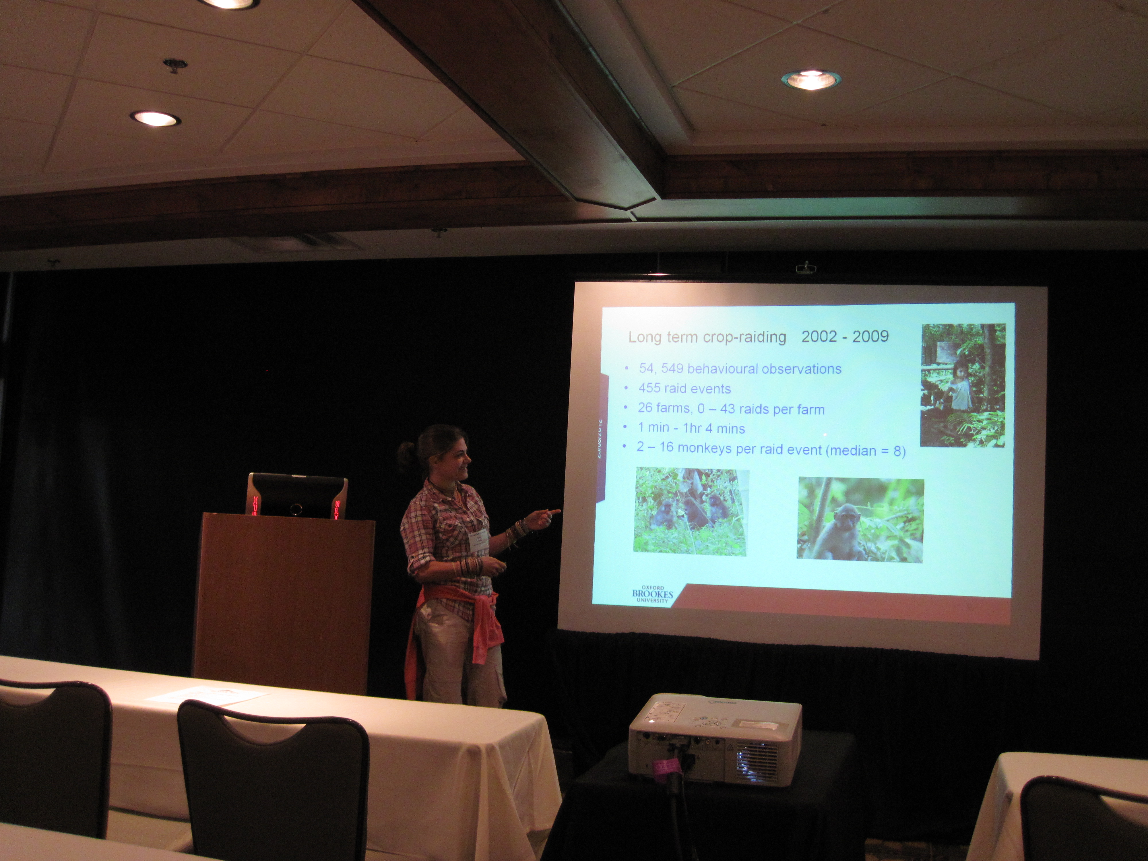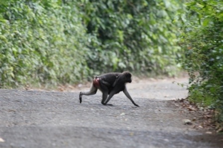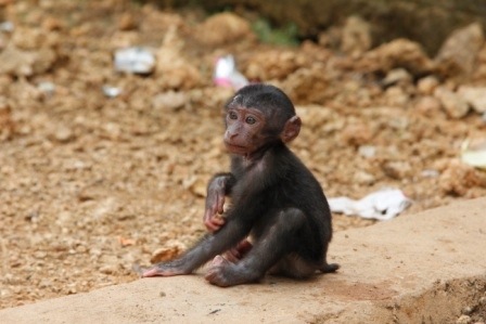 Monkeys are also kept as pets. Usually they are not actively trapped or hunted though. Often people end up with them when infants are dropped by the adult females when being chased from the farms. People pick up the infants thinking they are doing the right thing, not realising that if they left it the mother would most likely return and collect it. Monkeys rarely do well as pets. They may last a few years like the two pictured here but once they start to mature they become difficult to handle and aggressive and are either killed or left tied up and ignored to die a slow and lonely death. Usually the infants don’t make it past a few months. People don’t know how to look after them and they die of malnutrition and stress. The little baby monkey I found in the village last year sadly died a few months after I saw him – from what his owners tell me it sounds like it was malnutrition. In a way though it was probably for the best as he has at least been spared a life of misery.