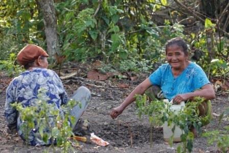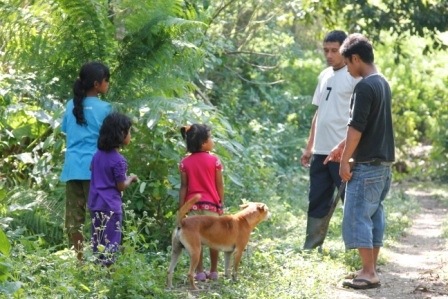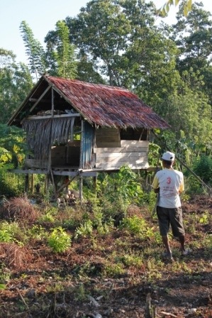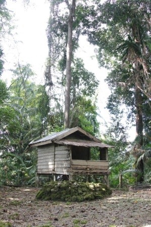 It’s a nice trek with only a few hills! On a recent trek in we decided to take a different route and came across a local sacred site known as ‘rumah fobula’, or ‘house of the white mango’. It’s quite an amazing place. It appears out of nowhere on a hill, suddenly the forest gives way to a patch of rattan palms and then what looks like a perfectly cleared farm with a small hut and a pair of stone graves. Behind the farm is a large, gnarled and twisted old mango tree – the White mango.
