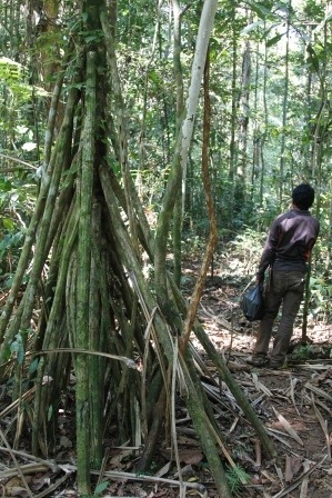 We follow them as long as we can, until we lose them or it gets dark. Then we head back – either to camp in the forest or back to the village. There’s always a chance to appreciate some of the majesty of the forest on the way back! 🙂