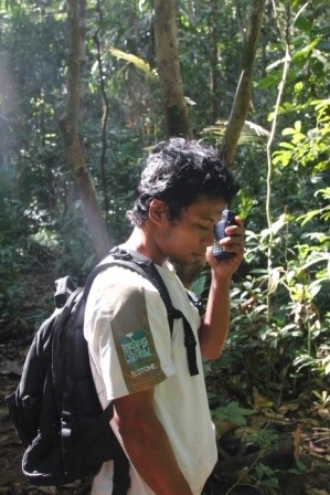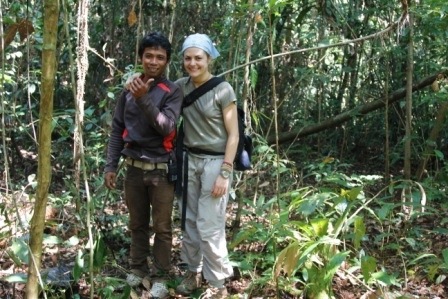 My two other guides La Mimi and La Tilili go ahead to try to track down the monkeys and we communicate via radio.